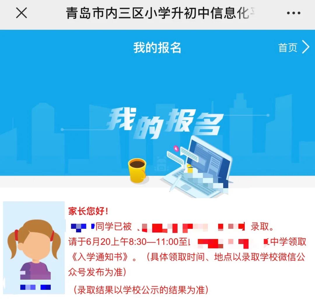 5月29日上午,青岛小升初第二阶段第一志愿电脑派位录取工作圆满结束。刚刚,小升初网上录取去向查询系统已提前开通!爸妈们快来查询!市南区:6月26日(星期六)上午8:30小学毕业生至初中学校新生报到。市北区:6月20日 上午8:30—11:00,小学毕业生至录取初中学校领取《入学通知书》李沧区:6月19日-6月20日,小学毕业生至录取学校领取《入学通知书》温馨提示:具体领取时间、地点以录取学校微信公众号发布为准。1、长按下面二维码进入青岛市教育局官方网站志愿查询页面。