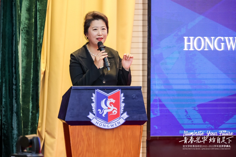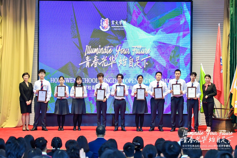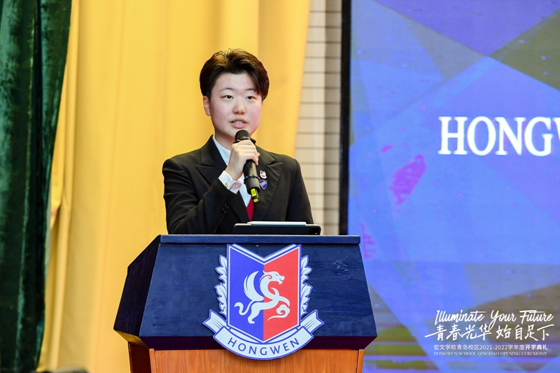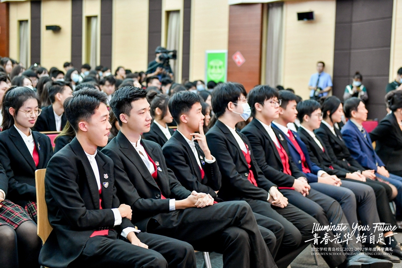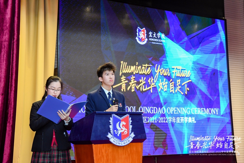 9月4日,宏文学校青岛校区举行2021-2022学年度开学典礼,以“青春光华,始自足下”为主题,寄寓宏文学子激扬青春,不负韶华。
