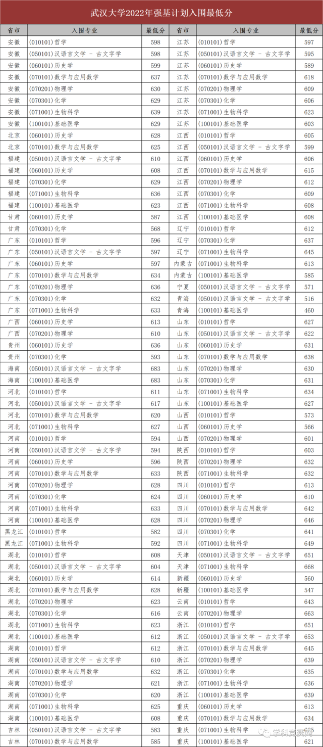 近日,2022年强基计划入围校测分数线纷纷出炉。目前除了复旦、上交、南大新强基以外,老强基院校已经有清华大学、北京大学、中国科学技术大学、武汉大学、西安交通大学、哈尔滨工业大学、西北农林科技大学、南开大学、国防科技大学、中国海洋大学、湖南大学、重庆大学、大连理工大学、中山大学、华南理工大学、西北工业大学、中央民族大学、中国人民大学、四川大学、山东大学、同济大学等近30所院校公布强基入围分数线。