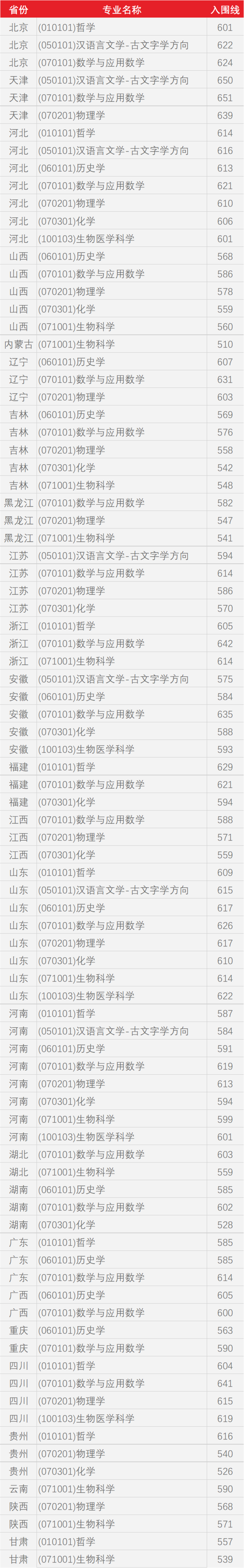 现将我校强基计划除上海市外的各省入围标准公布如下。