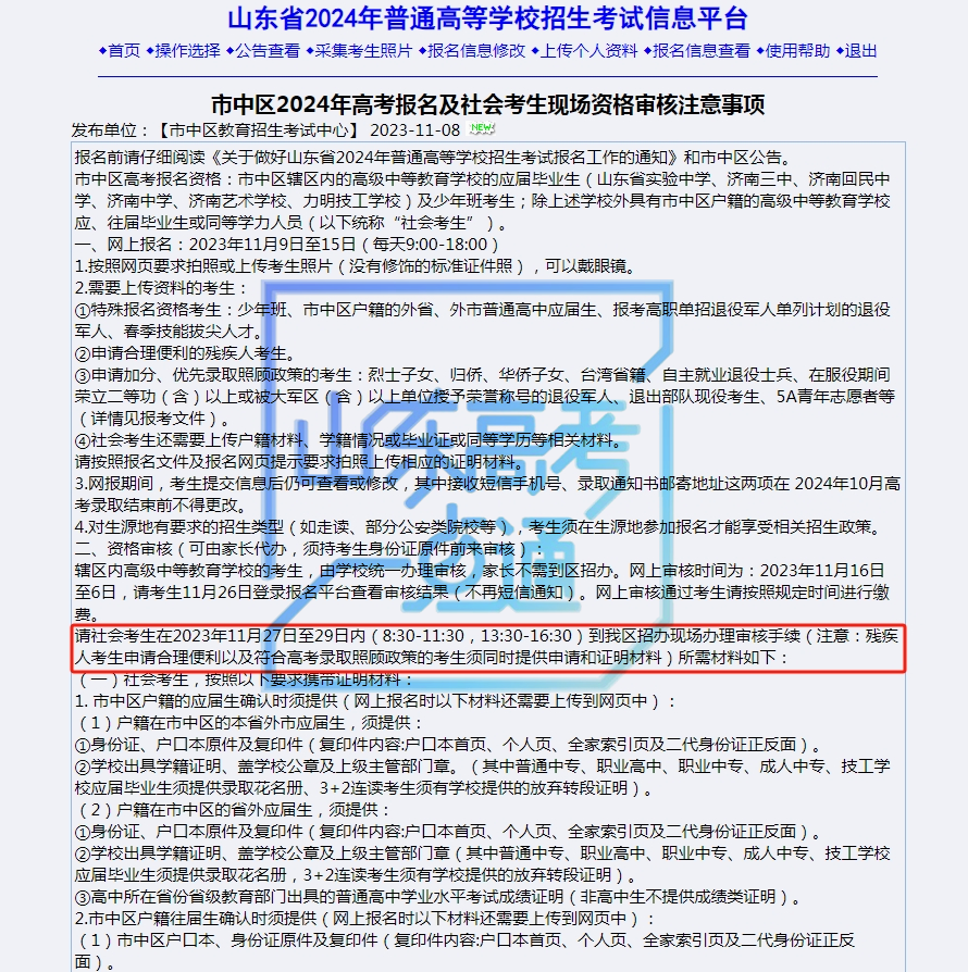 如济南市市中区要求所有社会考生均须进行线下审核: