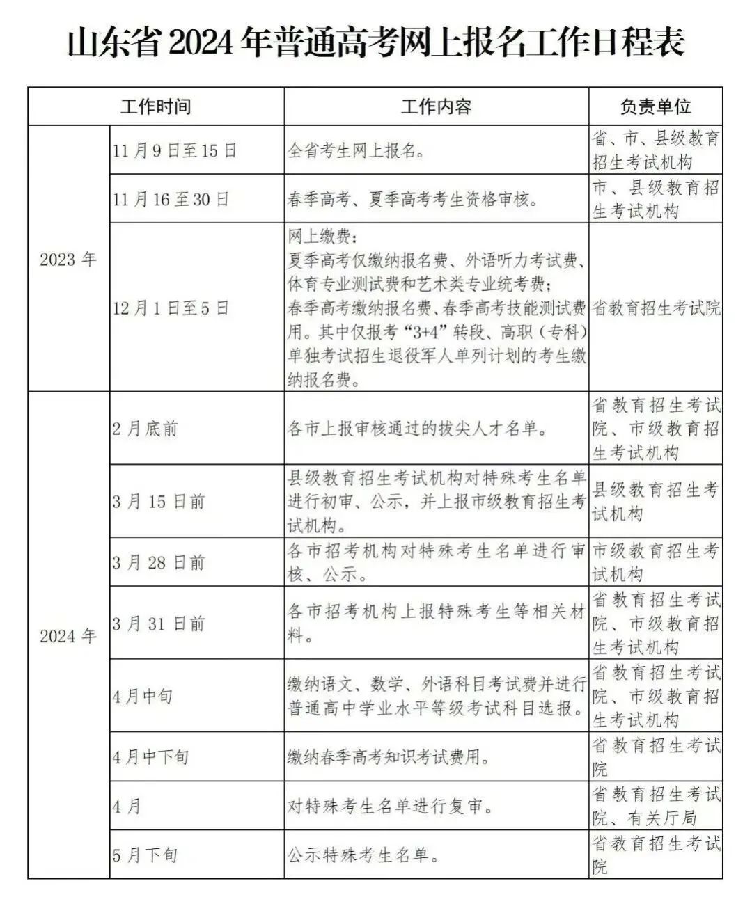 2024年高考报名信息填报阶段已经结束,后续要关注的就是资格审核和报名缴费。其中资格审核时间为2023年11月16日至30日。缴费时间为2023年12月1日至5日(每天9:00—18:00),考生须缴纳报名费、外语听力考试费、体育专业测试费和艺术类专业统考费,其他考试费在等级考试科目选报时一并缴纳,时间另行通知。