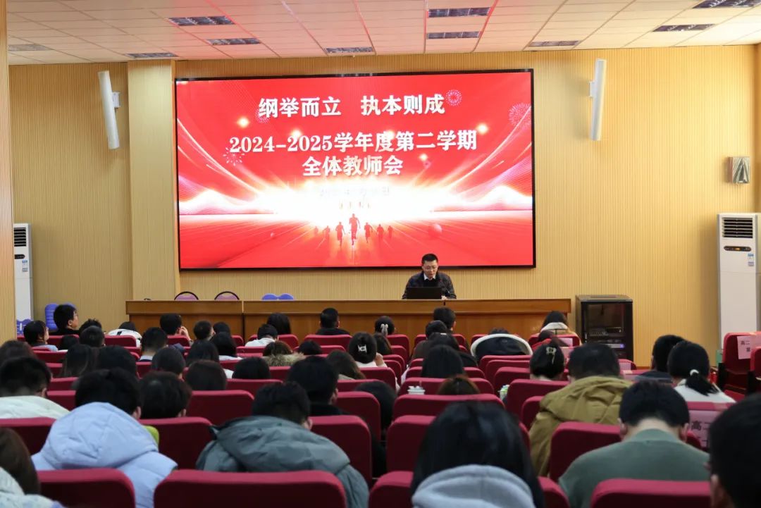 王校长以“纲举而立、执本则成”为主题,按照“争先奉献、实干兴校,品质提升、优质倍增”的全年工作总纲领,做新学期工作部署。他指出,全校要紧密围绕“提升教育质量”这一工作目标,践行董事长“教育无小事,事事是教育”的办学思想,落实教学工作的各项要求,坚持“干字当头”,不断提升管理能力、育人品质,确保新学期各项工作顺利开展。